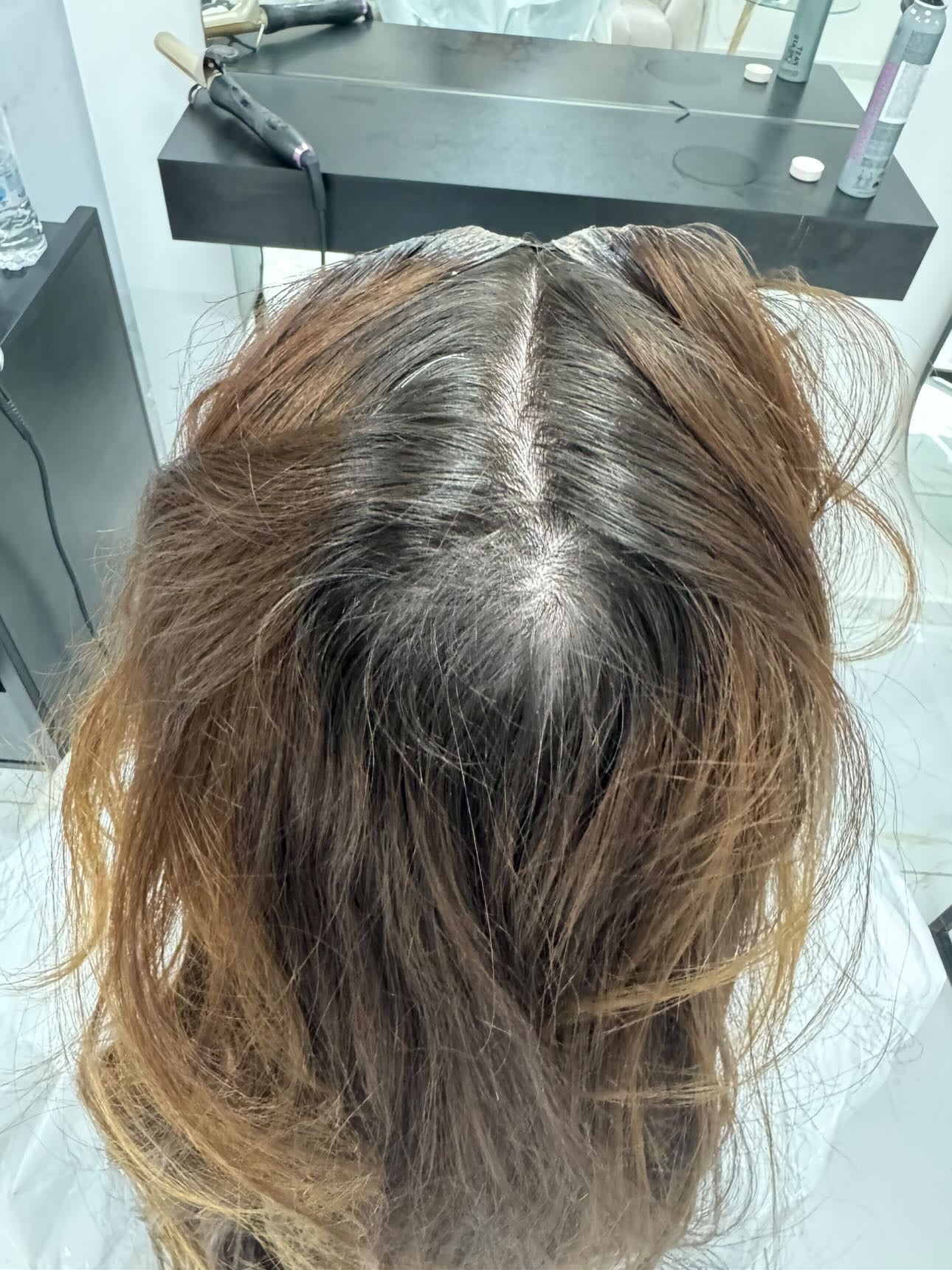 Но въпреки това започна терапията с пакета REBOOST – серуми, оризов еликсир, витамини. Схема, насочена не към замаскиране, а към възстановяване на основата – корена. Две седмици по-късно… нещо се раздвижи. След месец – нови, фини косъмчета. След два – огледалото вече отразяваше нова жена.