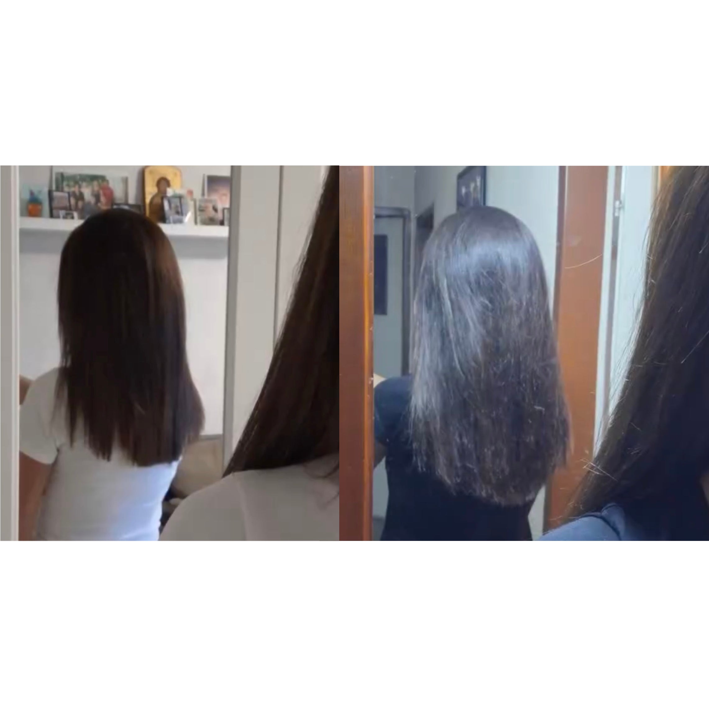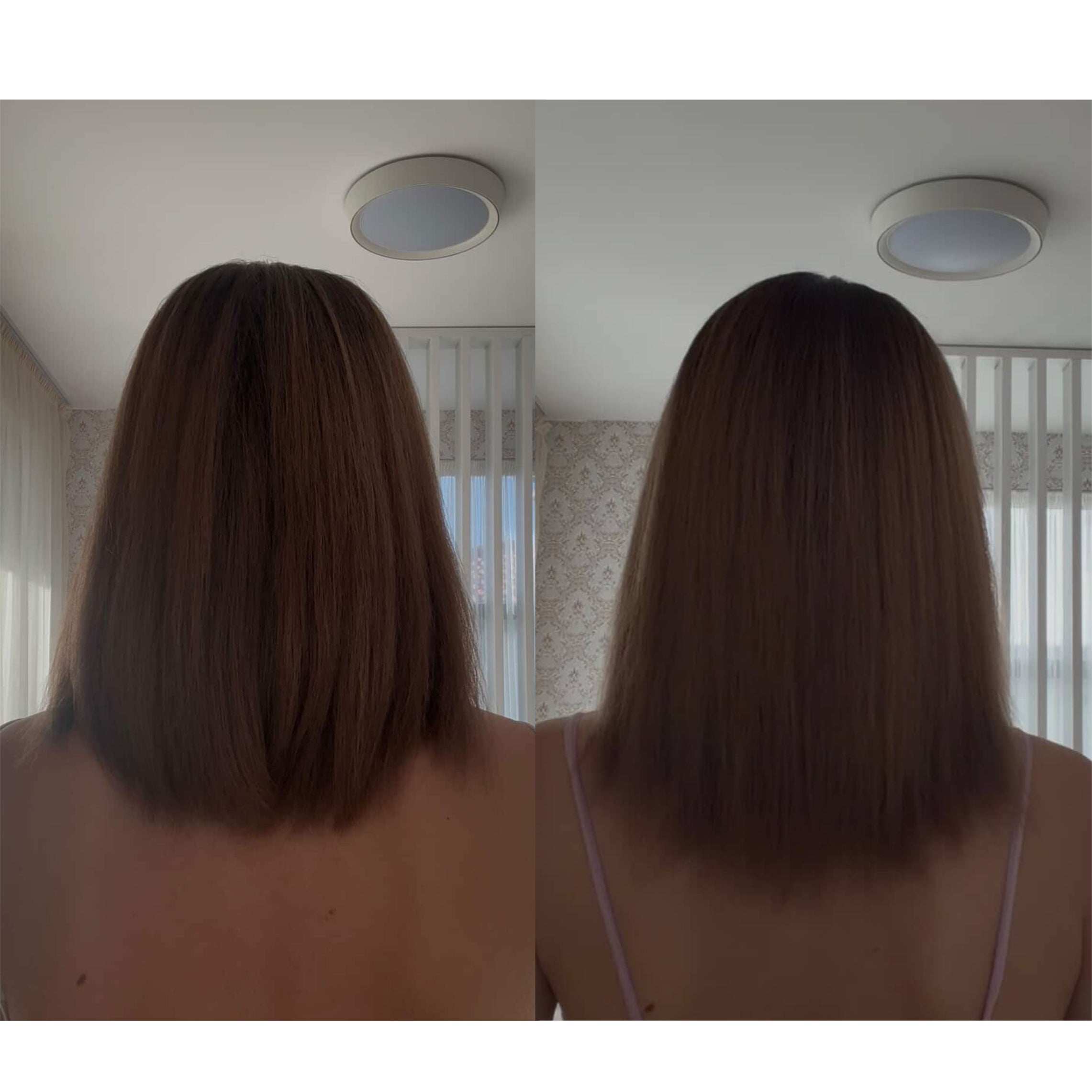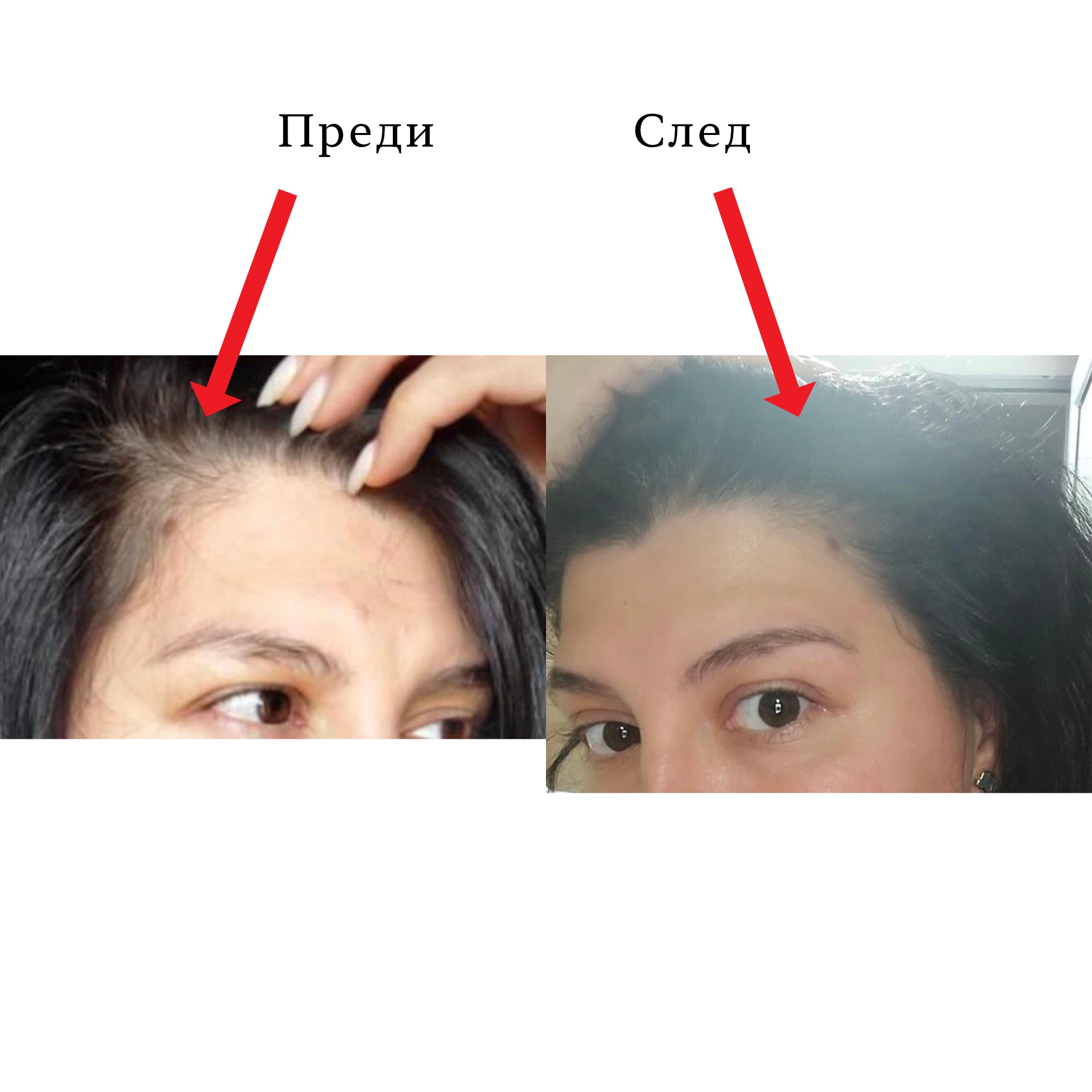 "Първите две снимки са преди, а последната е след употребата. Косата ми се сгъсти осезаемо, порасна на дължина дори и след 2 подстригвания. Благодаря"
