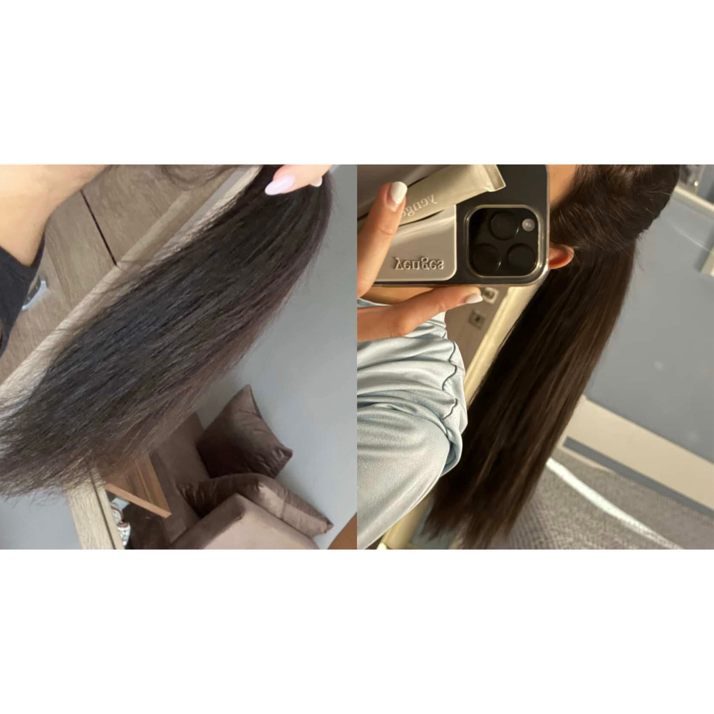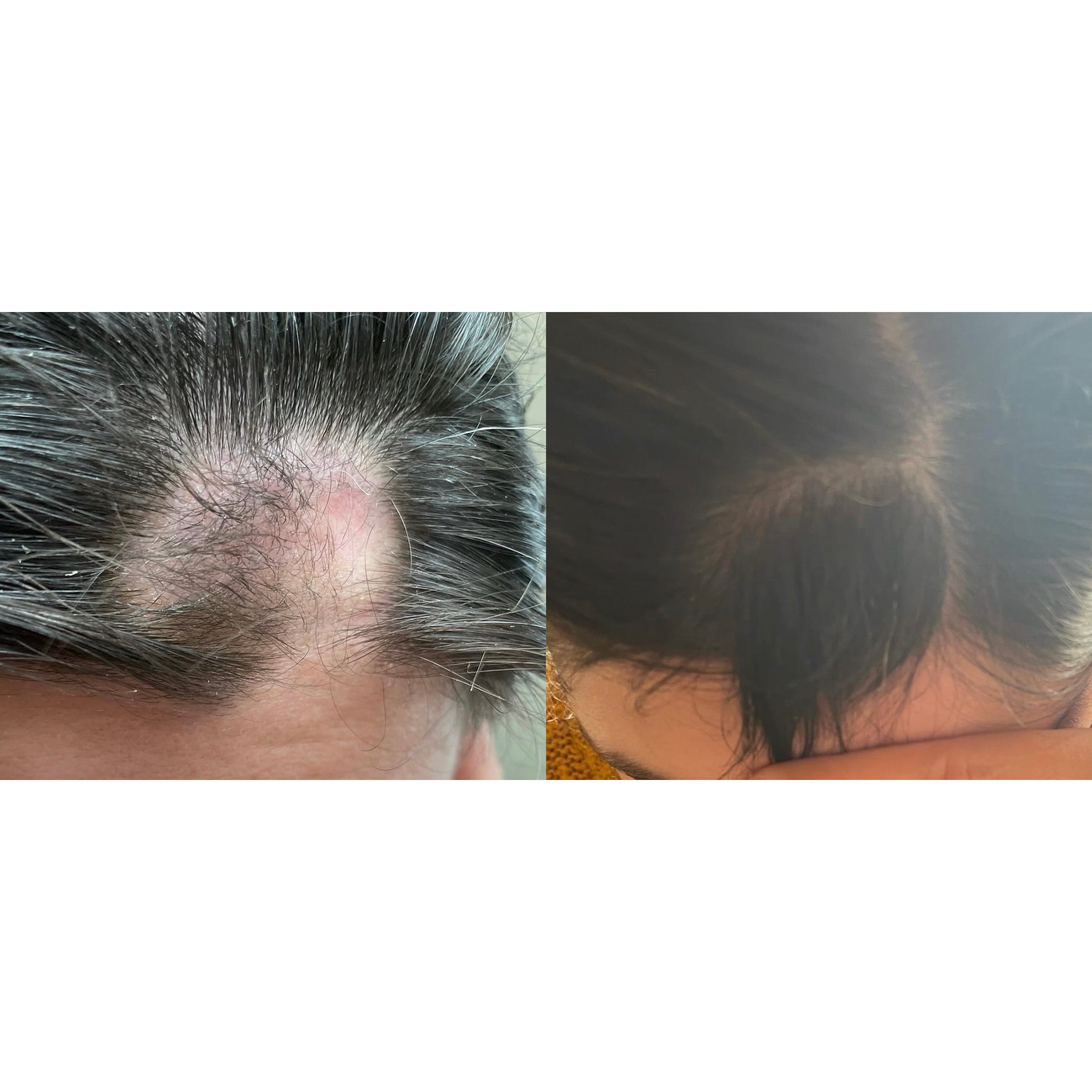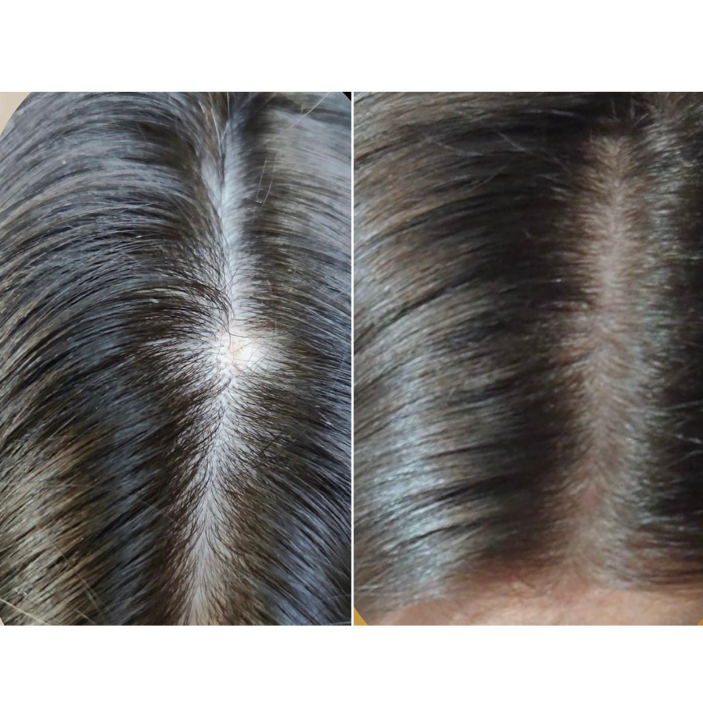 "Първите две снимки са преди, а последната е след употребата. Косата ми се сгъсти осезаемо, порасна на дължина дори и след 2 подстригвания. Благодаря"