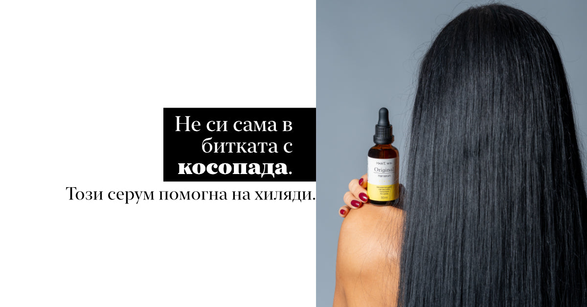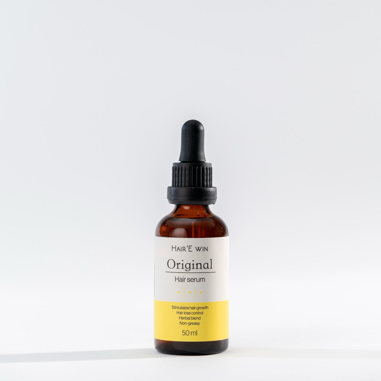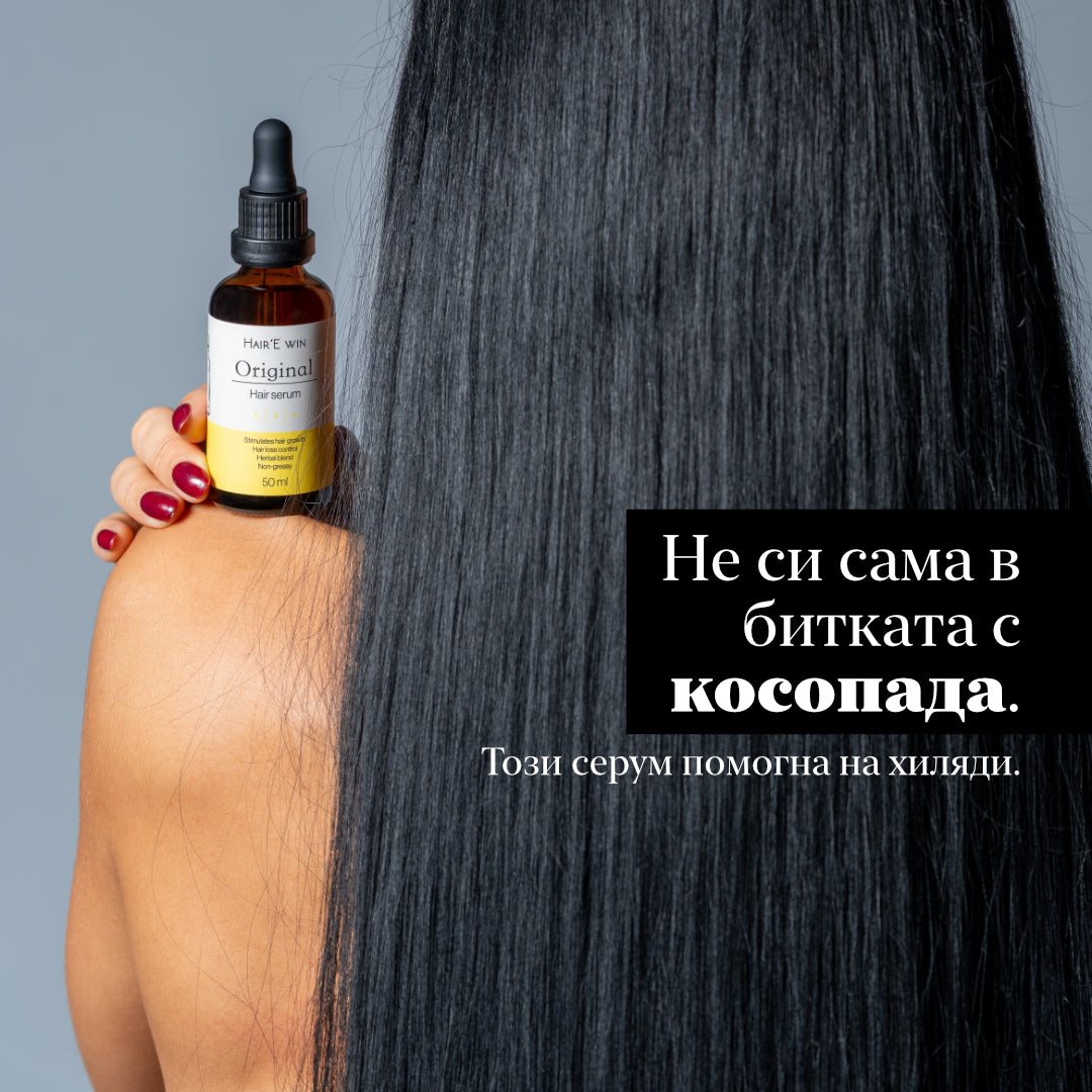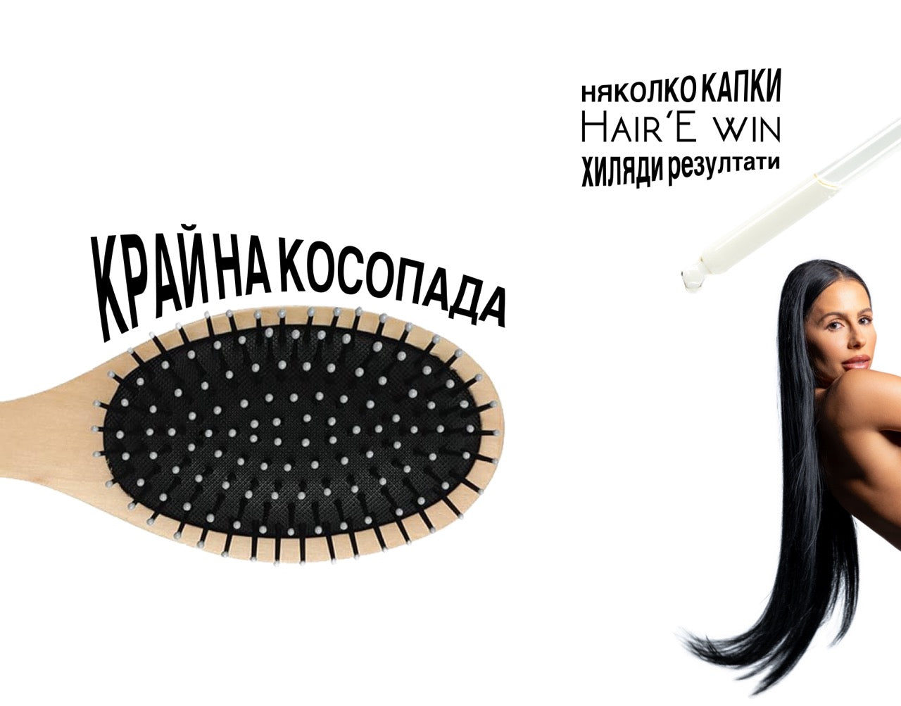 Серум за растеж на косата Hair'E win. Hair’E Win съчетава иновативна формула с научни изследвания и доказана ефективност. Нашите експерти са разработили специална комбинация от натурални съставки, която цели корените на проблема и действа в дълбочина, за да подсили и възстанови косата. Серумът овлажнява корените, помага за премахването на нежеланите молекули, блокиращи порите и намалява оксидативния стрес, предизвикващ алопеция. Подходящ е и за нанасяне върху вежди.